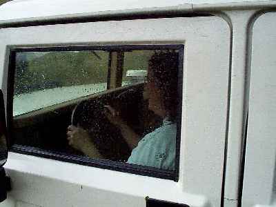 Jeff coming around the bend with Gerald hanging out the back window