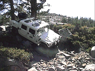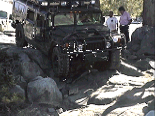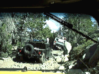 DAY 1The next morning all the rest of the group showed up and we had a total of 11 trucks ready to go. After a short meeting by Ron we started out on the trail. We went up the trail and right Well around this time we heard on the CB that 2 other Hummers were at the other campground and thanks to the radios were on their way to catch up with us. Well it took a long time to get all 11 trucks through this spot and Josh, Mike, Sam and J-Dee in the lost 2 hummers caught up and joined the group. It was a great feeling to have them find us as it must of felt lonely not finding the group. So now we were one happy and lucky group of 13. Well while they were catching up we all had our first real challenge